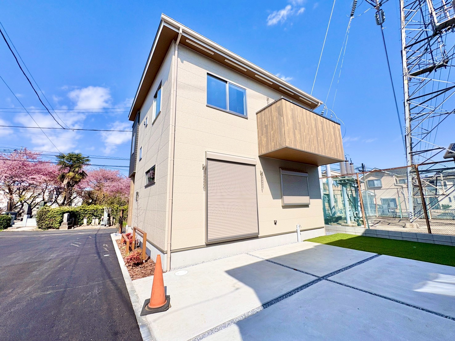 【B号棟】大和田駅まで徒歩15分の立地です。道路から距離をおき、優美に佇む外観です。