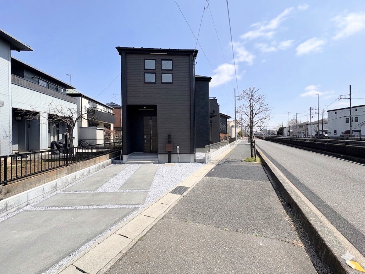 岩槻駅まで徒歩13分、南公道に面した全居室南向きのお住まいです。