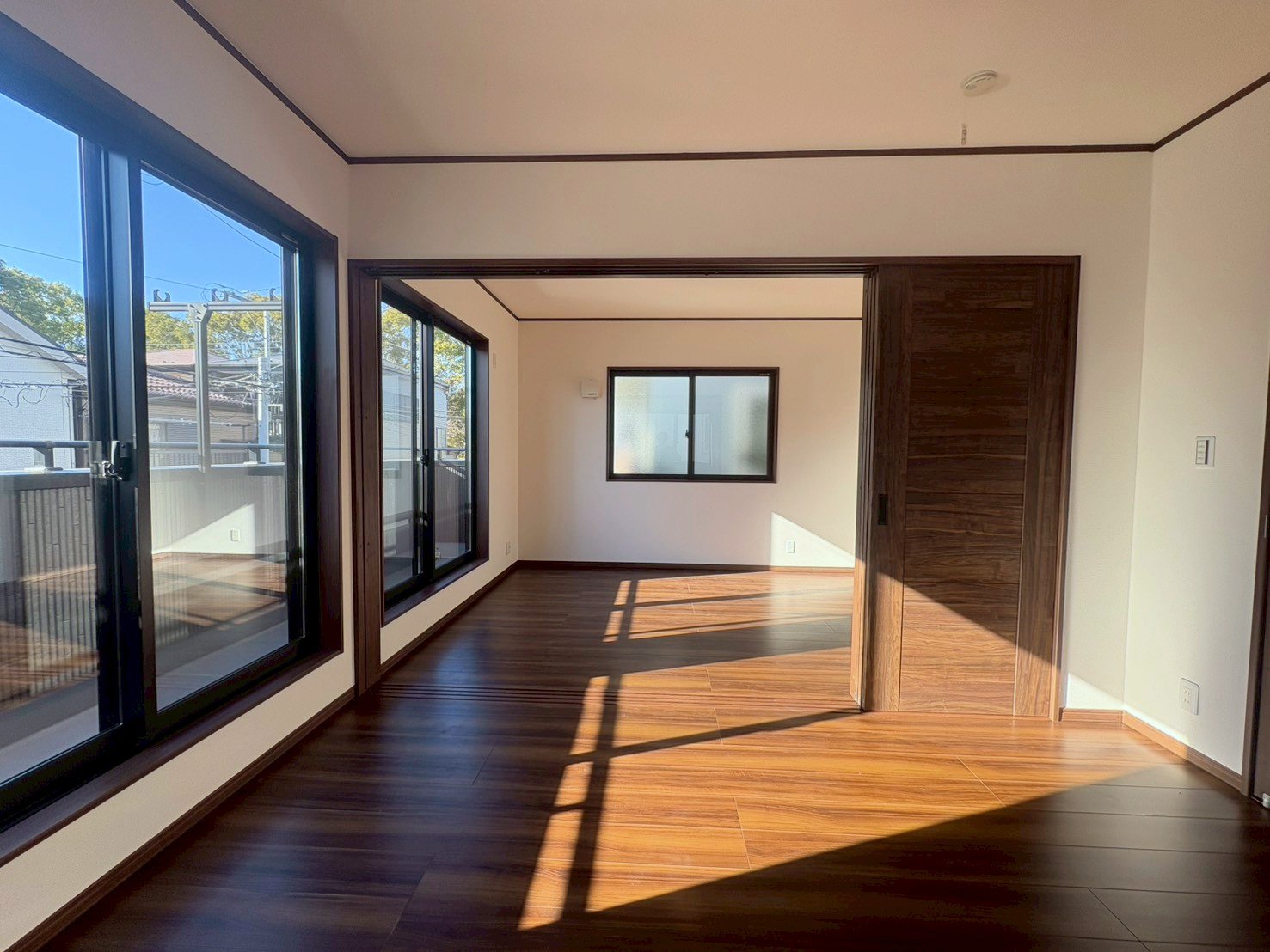 南東向きのLDK。豊かな光が差し込む開放的な空間。※現況の物件写真に、CGによる画像処理がされています。