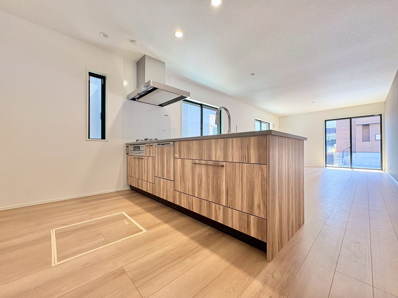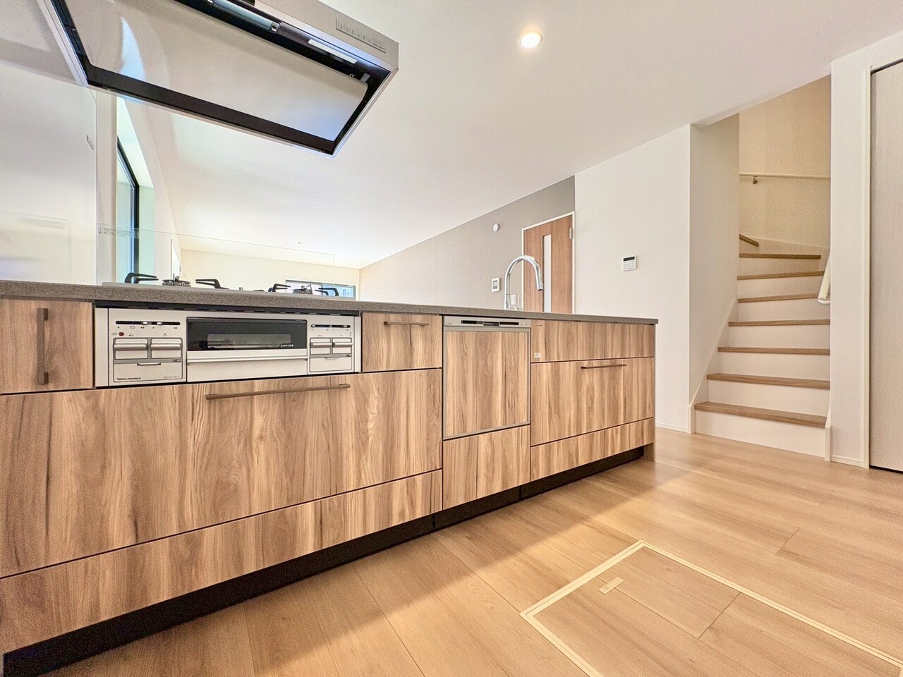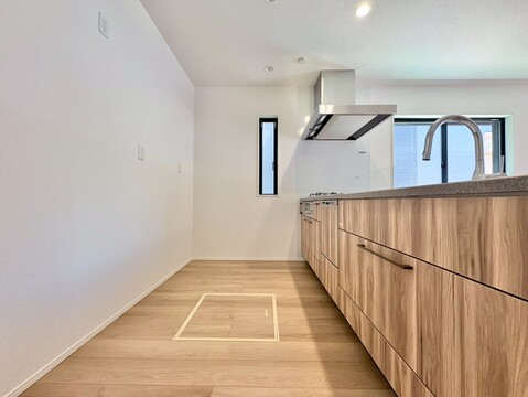 キッチンからリビング全体を見渡せ、会話を楽しみながらお料理できます。
