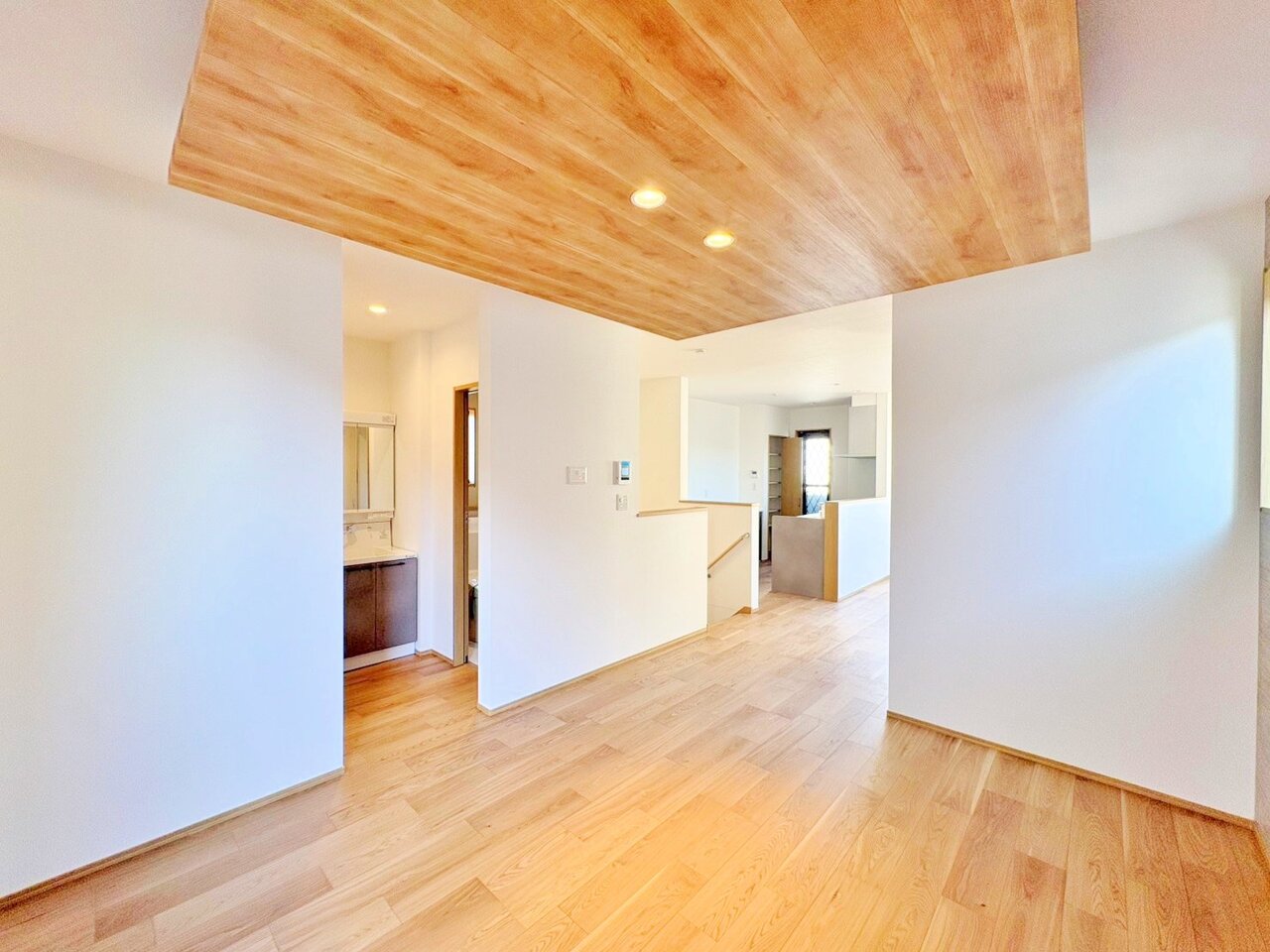LDKはデザイン性の高い折り上げ天井で開放感を演出しています。