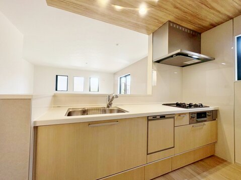 キッチンからリビングまでたっぷりと光が注ぎ、明るく気持ちの良い空間を実現。