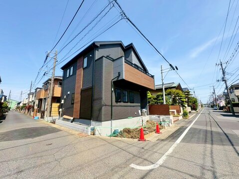 越谷駅まで徒歩15分、新越谷駅・南越谷駅まで徒歩19分の立地。陽光あふれる角地に佇む優雅な邸宅。(令和8年4月 撮影)