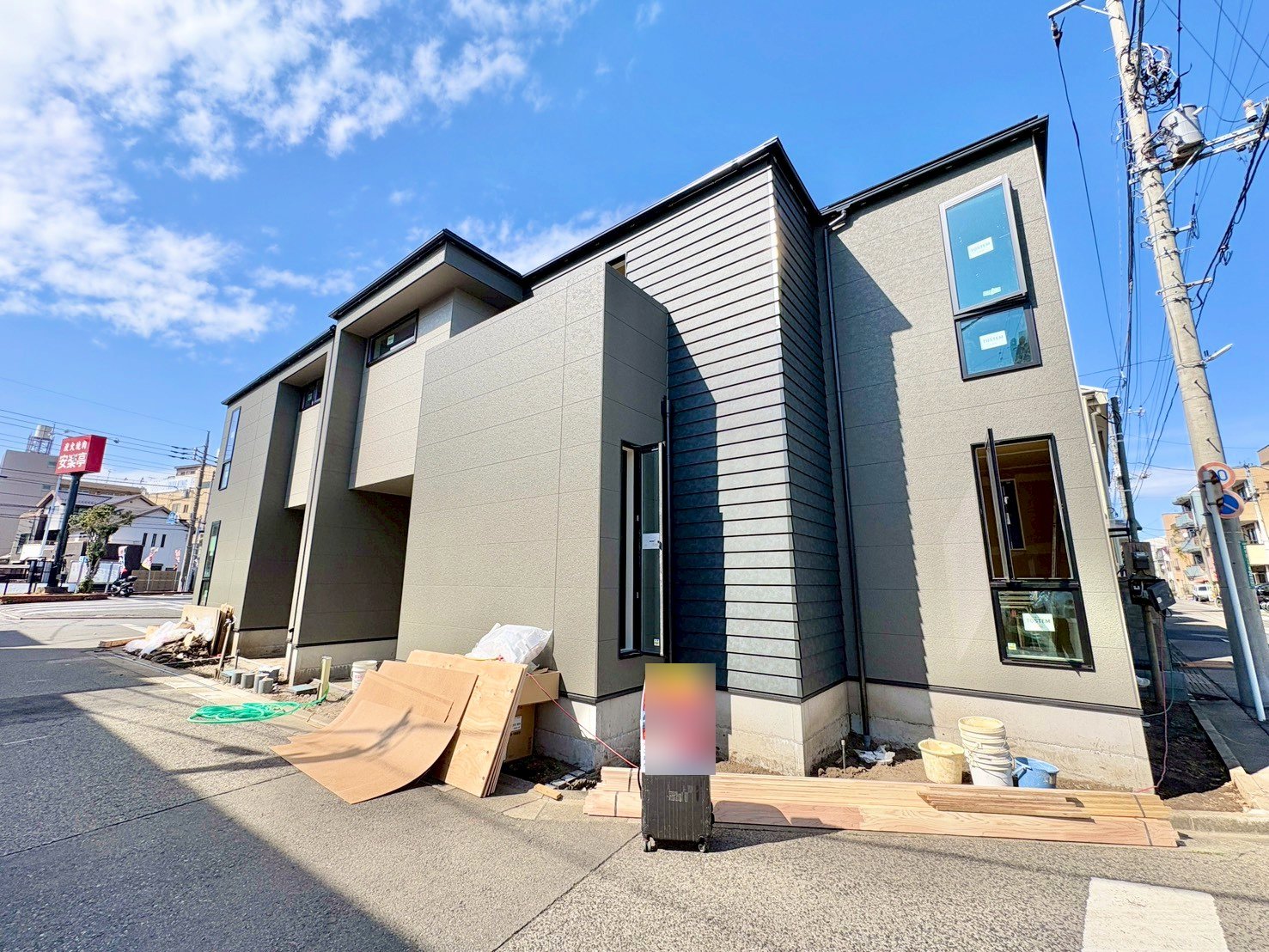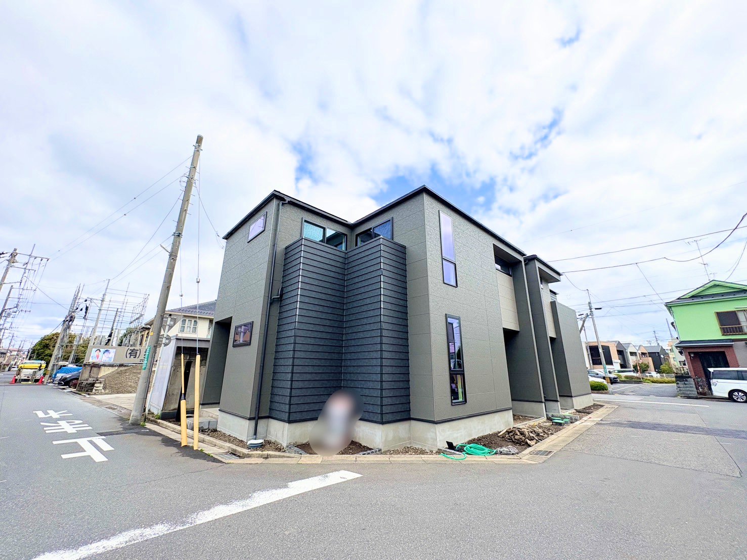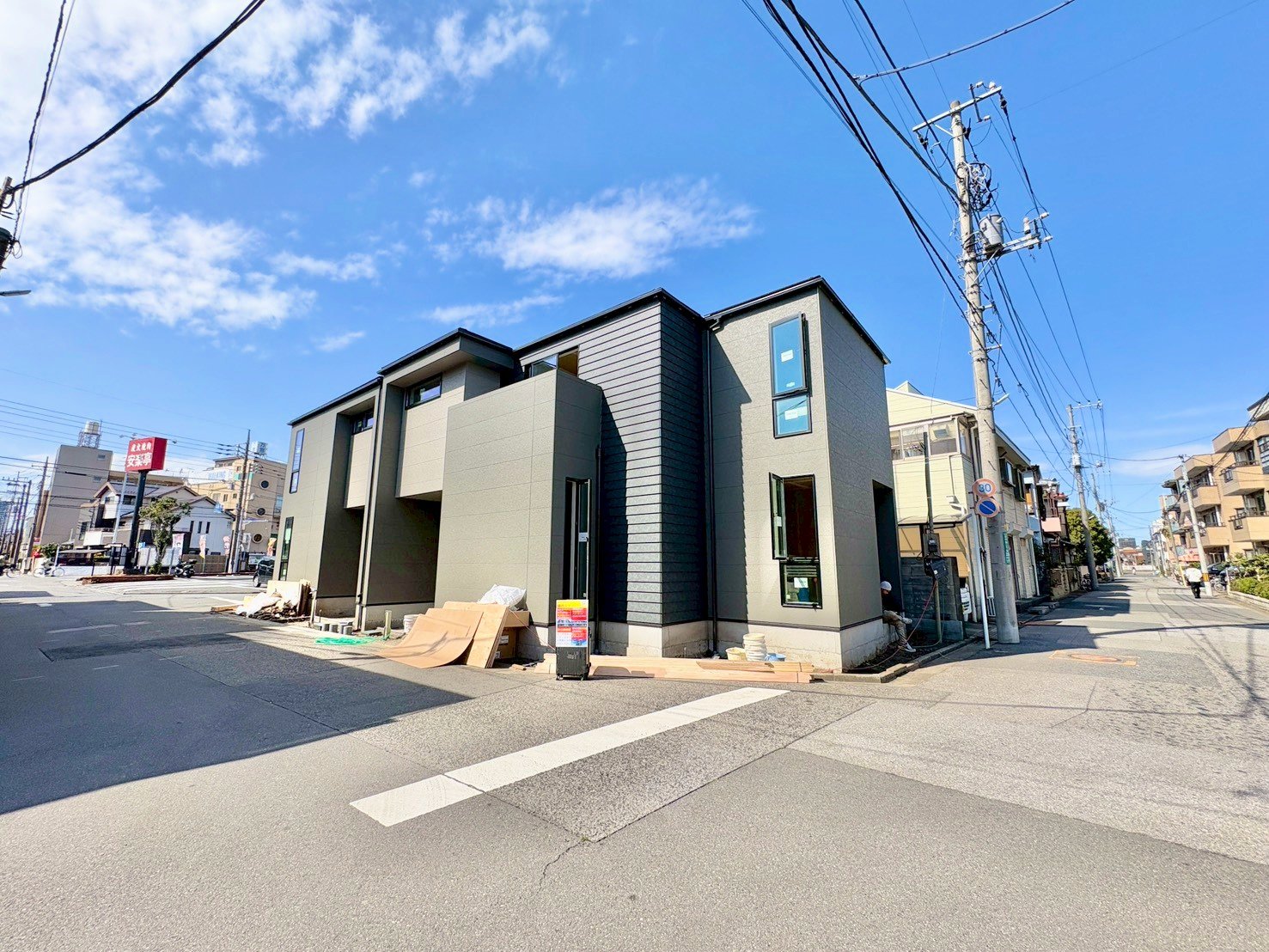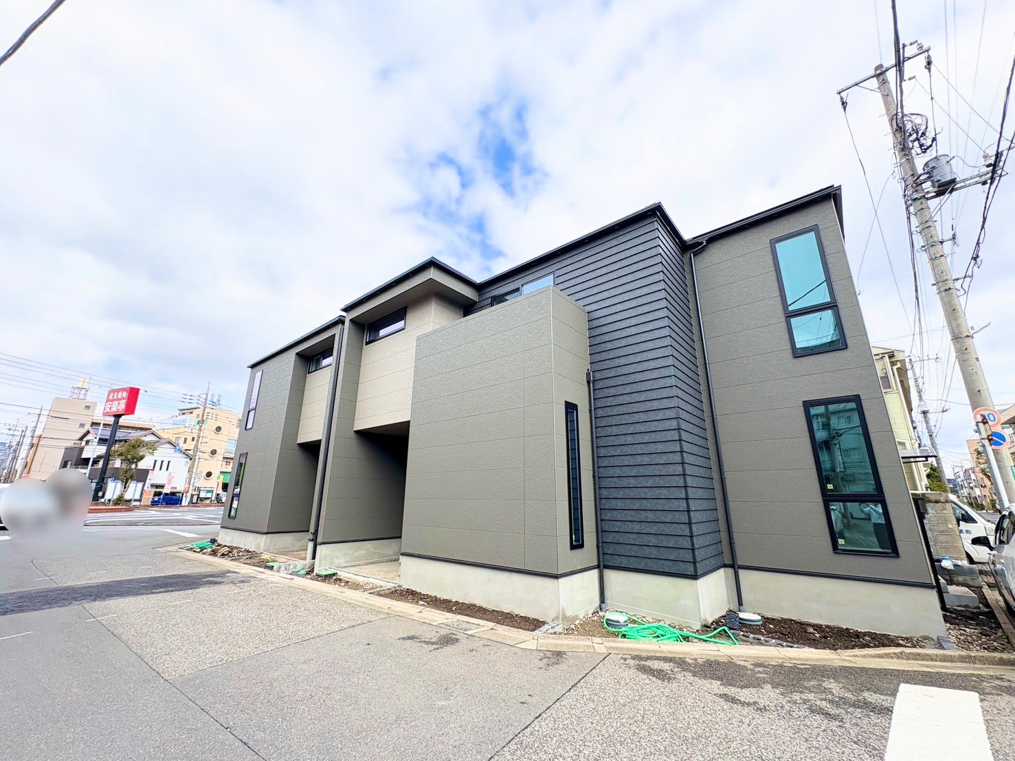 左側が当物件。蕨駅徒歩18分。角地に面した邸宅です。(令和8年3月 撮影)