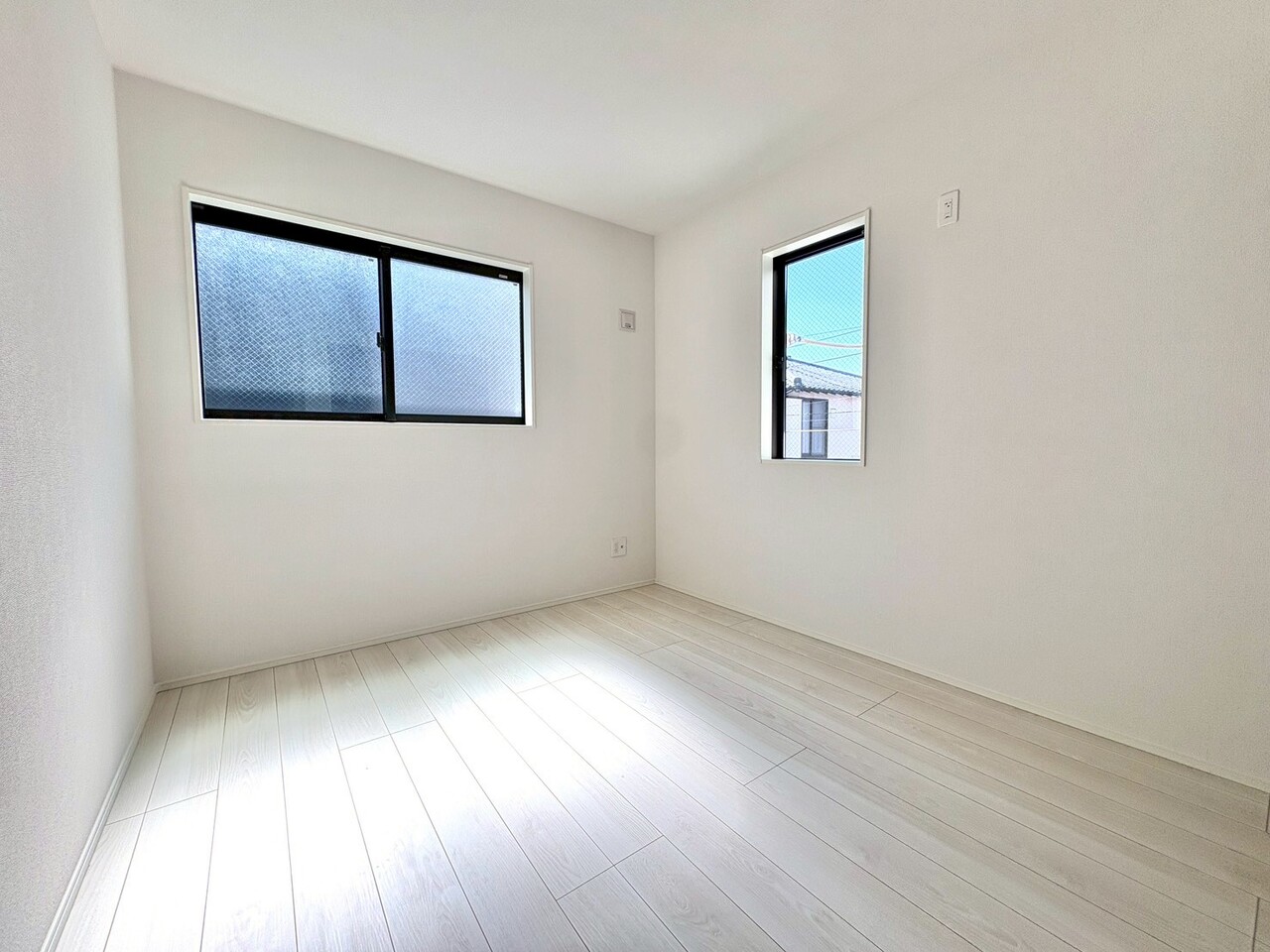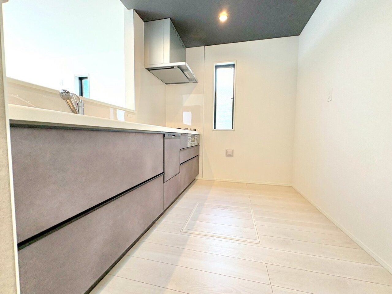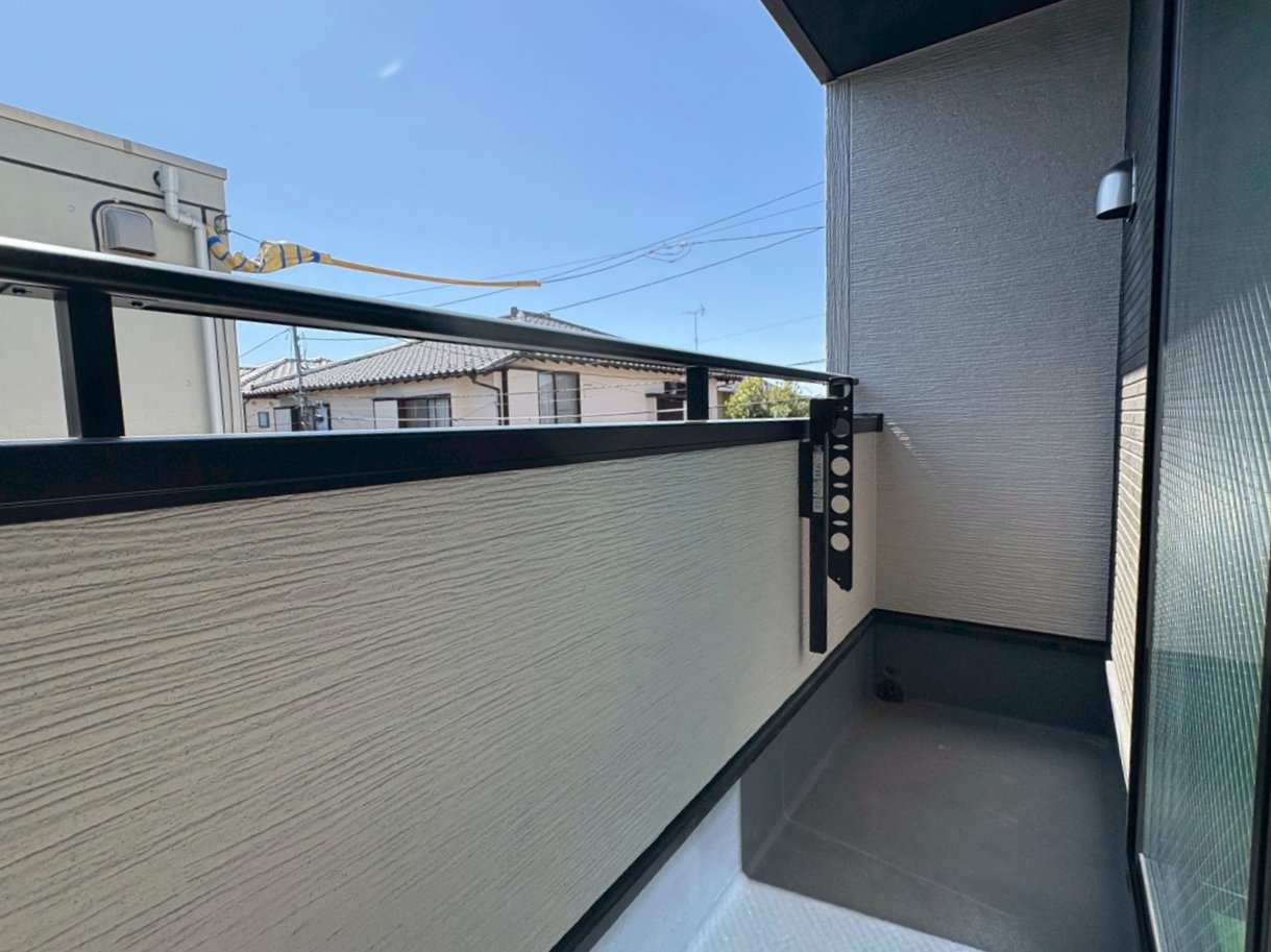 白と黒のメリハリあるコントラストが利いたお住まい。全室南向きの明るいお住いです。