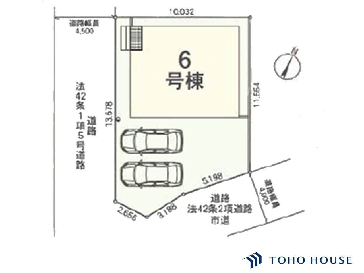 | 接道 | 角地 西側幅4.5m 南東側幅4m |