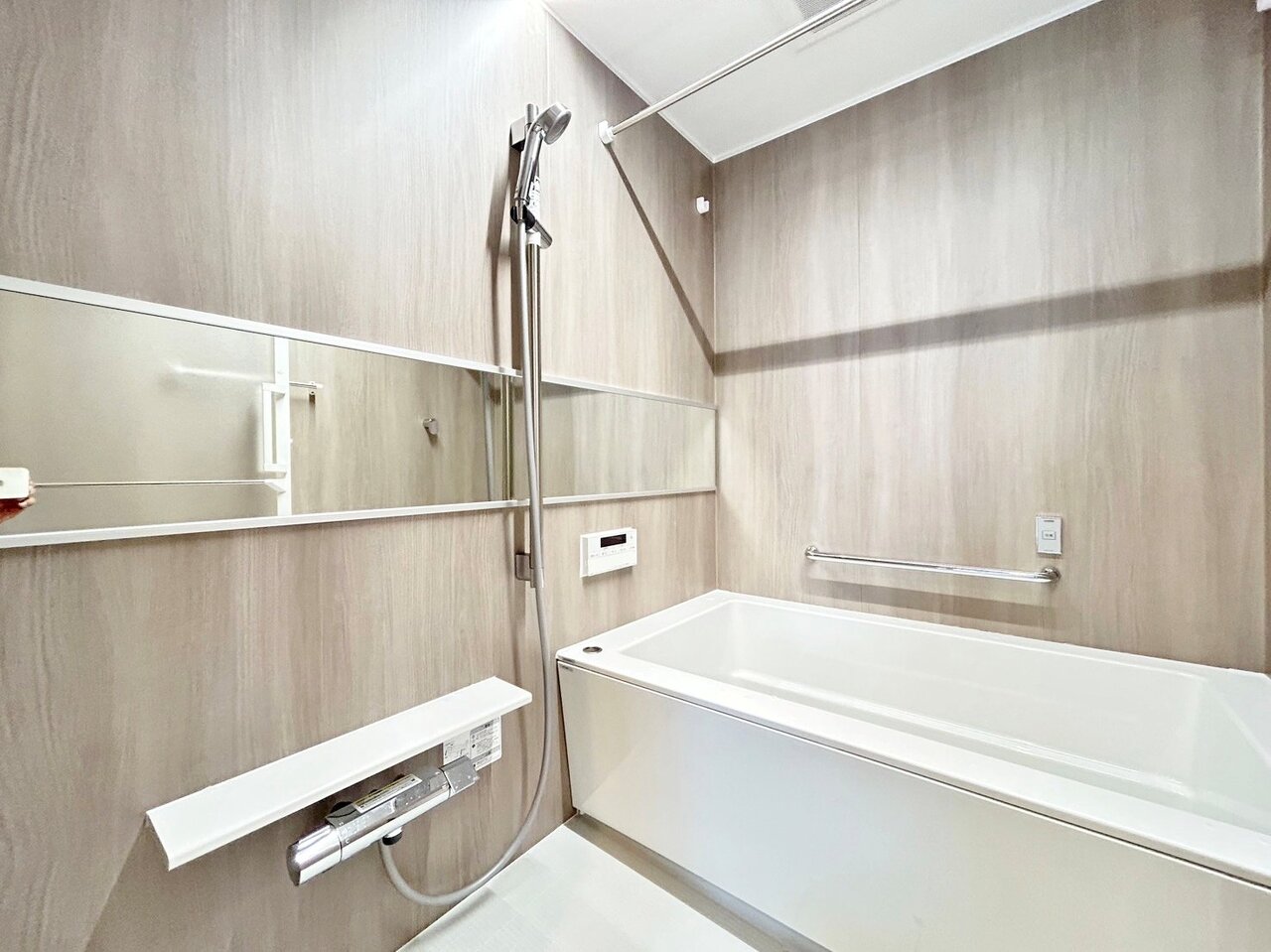 鏡も付いているので、外出前の身支度チェックもできますね。